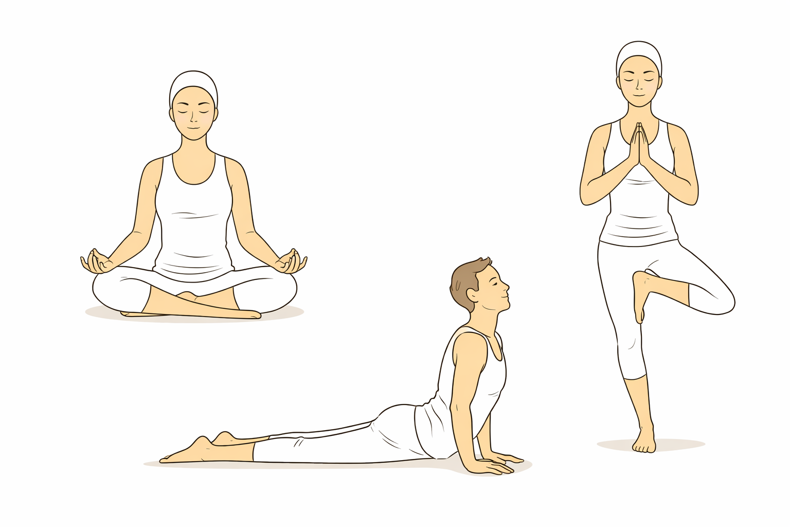 Les postures (asanas), associées à une respiration consciente, permettent :