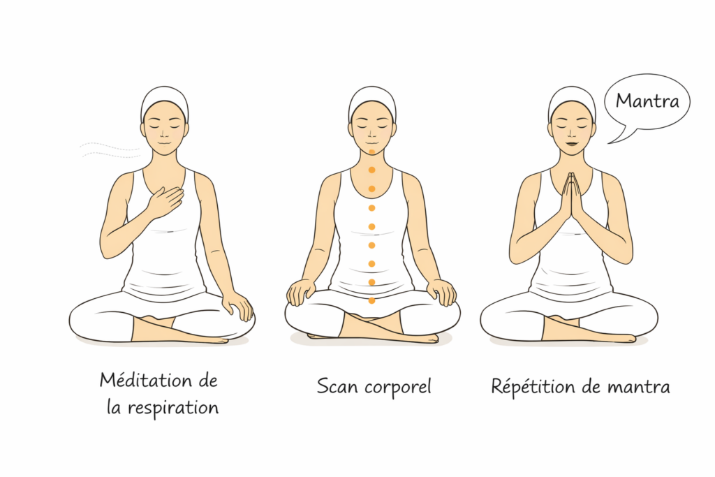🖼️ Illustration – Méditation avec répétition intérieure d’un mot